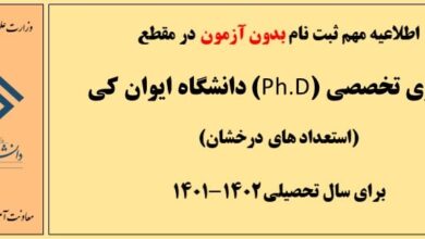 💥دانشگاه ایوان کی در نظر دارد، در راستاي اجراي “آيين نامه پذيرش بدون آزمون استعدادهاي درخشان در دوره تحصيلي دكتري…