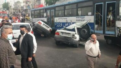 تصاویر | ترمز بریدن اتوبوس شرکت واحد در یک منطقه شلوغ شهری | برخورد اتوبوس با ۲۰ خودرو در لاین مخالف