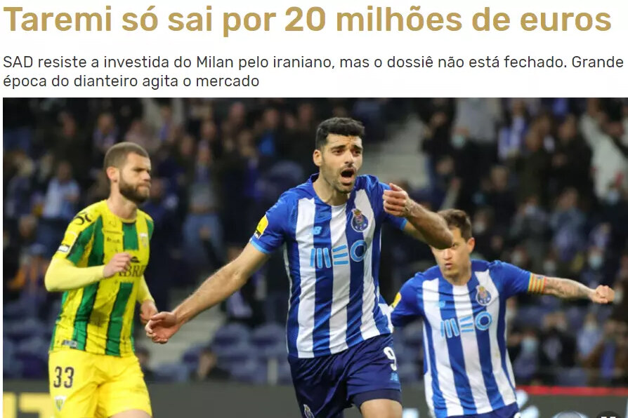 روزنامه «رکورد» پرتغال در این ارتباط گزارشی را منتشر کرد و نوشت: «طارمی تنها با ۲۰ میلیون یورو میرود. پورتو در برابر حمله میلان مقاومت میکند اما پرونده بسته نشده است.»
